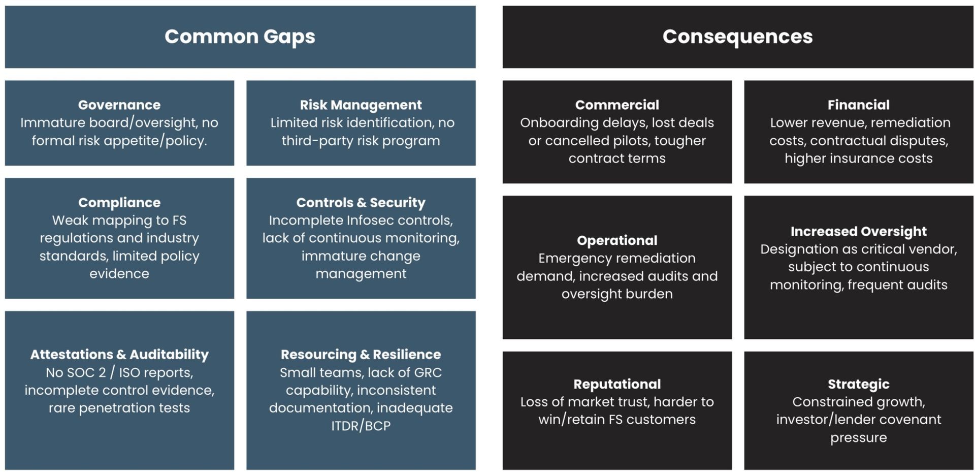 Immature governance, weak controls and poor audit evidence leave FS suppliers facing onboarding delays, lost deals, higher remediation costs and reputational risk.